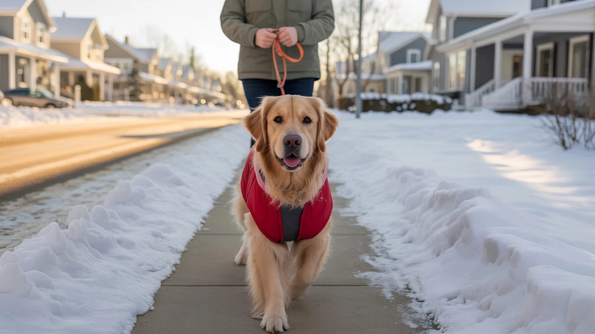 Protective winter gear is essential for safe dog walking in Connecticut's cold months.